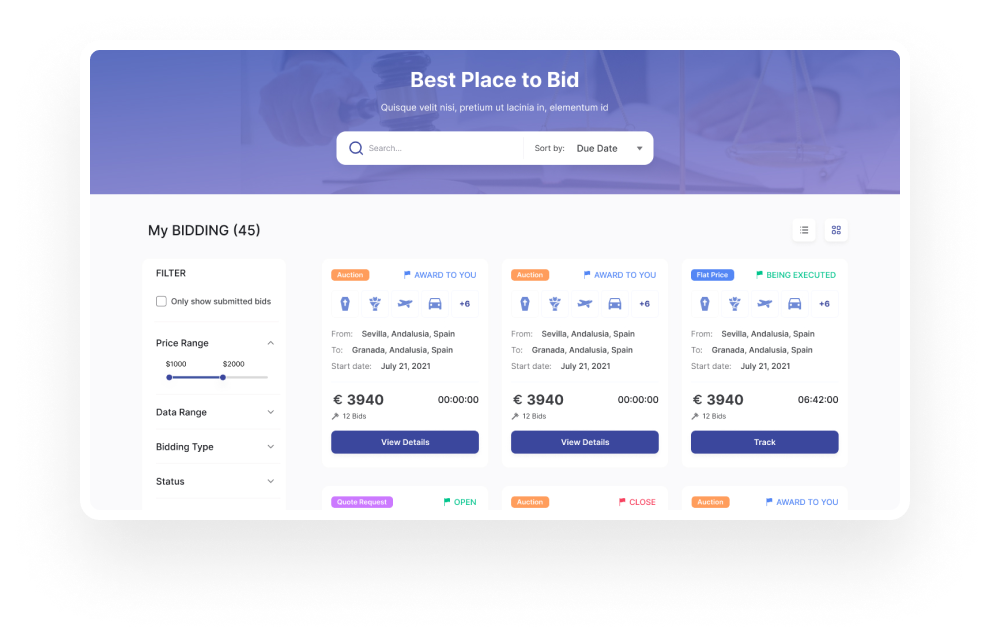 - Standard tender: you will receive the best cost proposal of the bids received in the tender with the provider’s contact details.